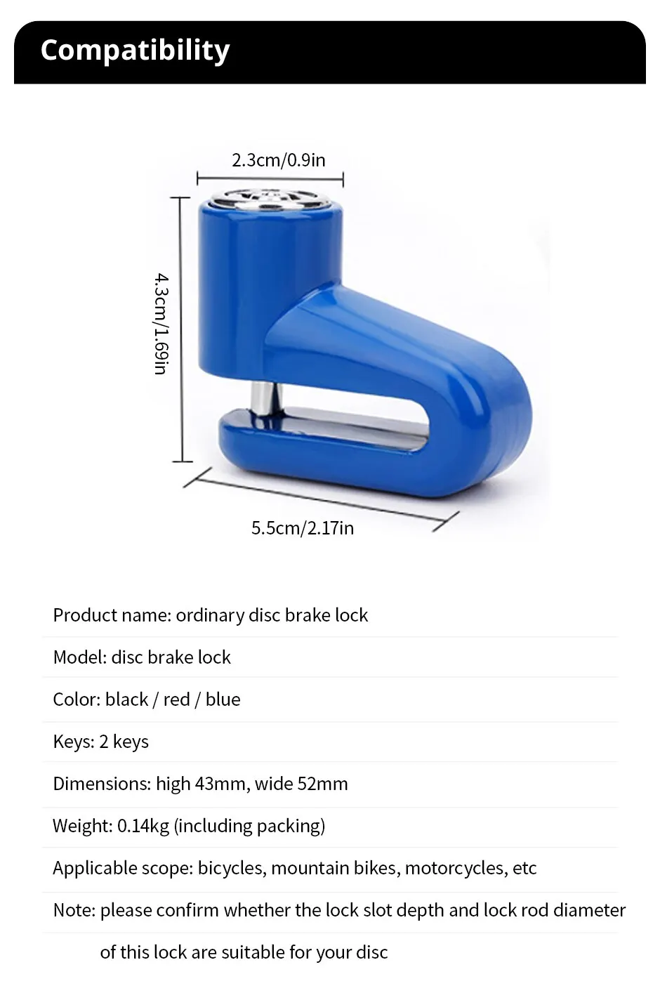 Anti-Theft Steel Motorcycle Disc Brake Lock Durable Road Bicycle Disc Lock with Keys Portable Mountain Bike Lock